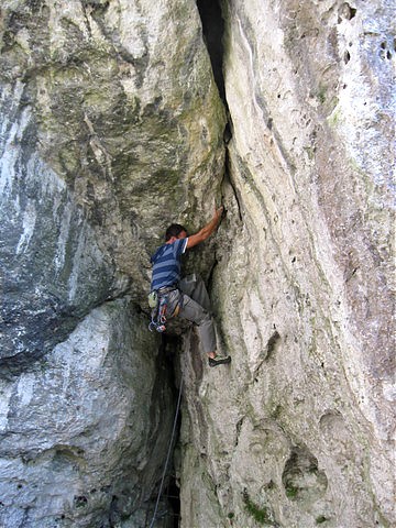 1.Angielski Lans VI 1+ (E 2) stanowisko zjazdowe.Super wspinanie w rysce zaczynającej sie na wysokosci kilku metrów.Poniżej rysy super asekuracja z pętli w rysie małe C3 oraz w 3/4 drogi nastepne uszko skalne.Droga wygląda na bardzo trudna linie ..