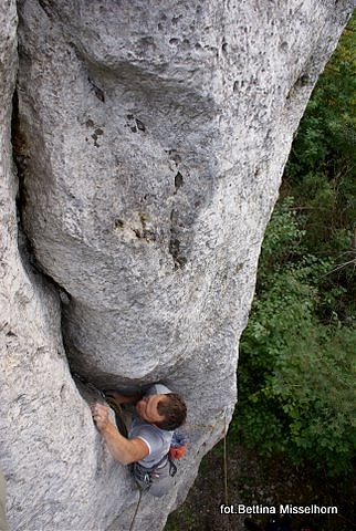 Po podreperowaniu budzetu ponownie jestesmy w trasie tyle że już z o wiele słabszą formą i psychą .. .w trakcie poszukiwań formacjii która by mogła wyjśc daleko poza trudnośc VI 5 trafilismy do Bisnika w Smoleniu który był wyeksplorowany w minimalnym stopniu.Udało nam się poprowadzić kilka ładnych lecz nie trudnych dróg spod znaku Trad . A mianowicie pierwsza to Rysa z Krzakiem VI która była poprowadzona wraz z Marcinem Holewą w stylu os w czasie tego przejscia droga była oczyszczana podczas prowadzenia.Można tylk sobie wyobrazic jak wyglądalismy po poprowadzeniu tej drogi... Nastepną drogą była rysa o podobnych trudnosciach ktora była prawdopodobnie juz prowadzona ale nie udało nam sie uzyskac jakichkolwiek info,stan tej drogi nie wskazywał na to że była ona kiedykolwiek przechodzona.Podczas drugiej wizyty na Biśniku wraz z Darkiem Melonem Melaniukiem zainstalowalismy na 3 nowych drogach stanowiska zjazdowe